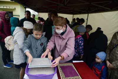 Also the museum staff had prepared special activities for the museum’s visitors. A number of creative workshops united by a paper theme were working in the museum’s inner yard. The guests of the workshops tried ancient technologies of paper making and produced handmade paper sheets on their own. They experimented with different practices of creation of paper decorations (e.g. origami). They learnt calligraphy using a quill and a metal nib pen.